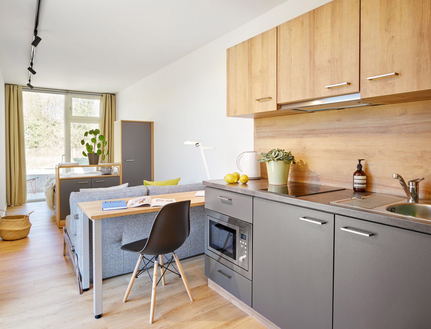 Un studio de 26m2 installé dans un immeuble fait de containers C'est en Allemagne que l'entreprise Containerwerk, spécialisée dans la construction de logements à base de containers, a construit un immeuble de studios, dans un immeuble fait de 21 modules désaffectés. Ils ont été disposés par groupes de trois et la façade métallique a été habillée en bois non traité, afin de devenir un habitat durable. Chaque appartement mesure 26m² et possède l'équipement et le mobilier de base pour être habitable immédiatement.