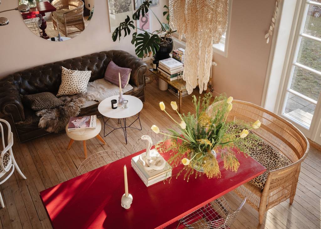 Tableaux et objets éclectiques abondent dans cette maison à la décoration originale et vintage construite en 1927 à Stockholm. Construite sur trois niveaux, c'est le royaume de la couleur et de l'éclectisme. Voici une décoration qui plaira aux amateurs de maximalisme, et de lieux à la forte personnalité. Située dans un quartier résidentiel, cette maison est lumineuse et ressemble à une maison de ville anglaise avec sa terrasse ensoleillée et son jardin.